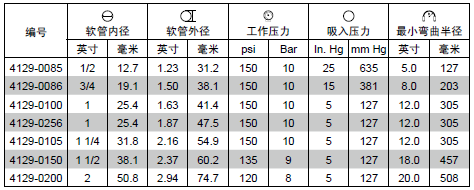 外膠層:D型(丁苯橡膠),黑色伴黃色螺旋色帶。所有尺寸經(jīng)針刺。