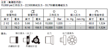 Black Gold? 注漿(丁腈橡膠內(nèi)膠)15,000 psi工作壓力 - 22,500測(cè)試壓力 - 33,750最低爆破壓力