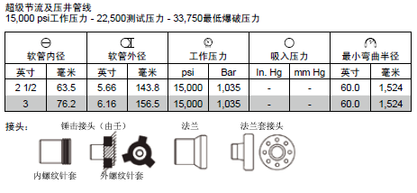 15,000 psi工作壓力 - 22,500測(cè)試壓力 - 33,750最低爆破壓力