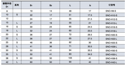 EMB四通接頭主要型號(hào)有H8-S;H12-S;H15-L;H20-S;H22-L;H30-S;H42-L等。