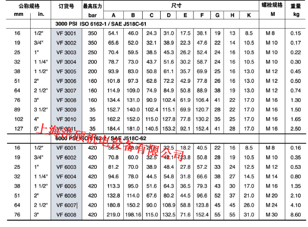EMB法蘭 VF-SAE整體法蘭 主要型號有VF 3009;VF 3011;VF 3006;VF 6004;VF 6007等