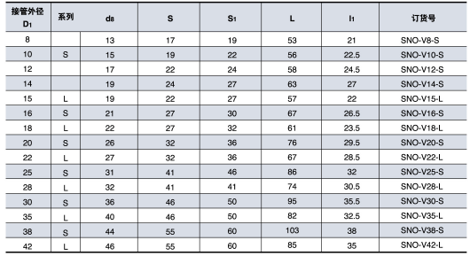 EMB直通焊接變徑接頭主要型號(hào)有V8-S;V12-S;V14-S;V15-L;V22-L;V25-S等。