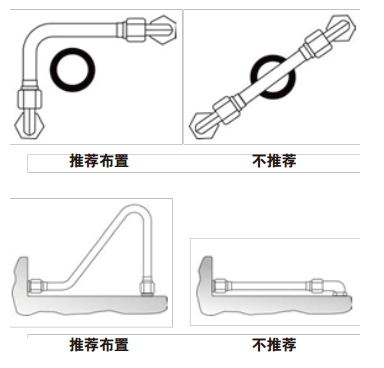 只要可能,應(yīng)該使用軟管或者緩沖支撐以隔絕硬管總成和因?yàn)樵O(shè)備震動(dòng)或者運(yùn)動(dòng)產(chǎn)生的應(yīng)力。
