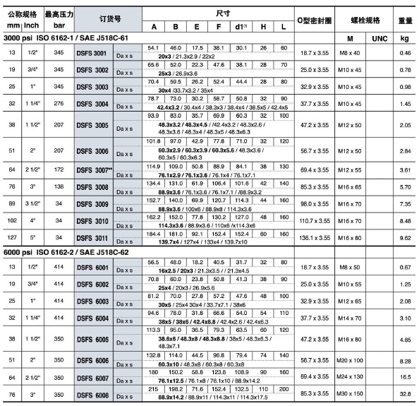 DSFS法蘭組件 DSFS法蘭組件尺寸