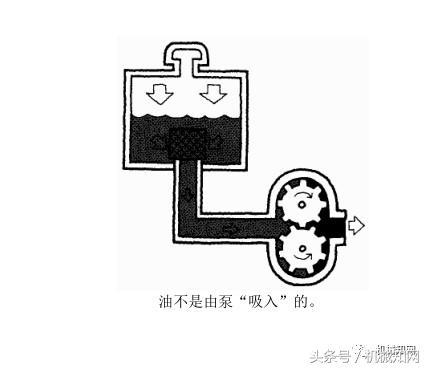 重力產(chǎn)生的壓力把油箱中的油壓入泵。油不是象許多人想像的那樣被泵“吸入”的。泵工作把油推出。通常所說的泵的吸油過程,意指重力將油推入泵。