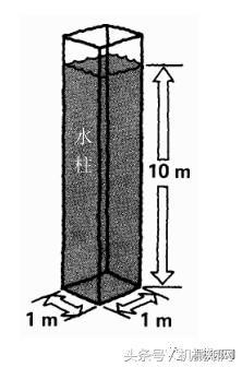 大家知道,一立方米水重量為 1,000 公斤。用水柱高度10 米乘以這一數(shù)量,得到的總重量是 10,000 公斤。底部面積是一平方米。這樣,重量分布在 10,000 平方厘米之上。如果我們把總量10,000公斤除以10,000平方厘米,我們可以發(fā)現(xiàn),這一深度的壓力是每平方厘米 1 公斤。