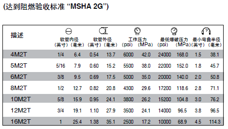推薦用途:高壓液壓油路。超過(guò)SAE 100R16的要求。M2T軟管的外形尺寸更小,而彎曲半徑小很多。