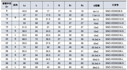 EMB可調(diào)式L型管接頭主要型號(hào)有VDDKO12-S;VDDKO22-L;VDDKO25-S;VDDKO42-L等