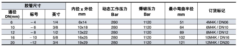推薦使用范圍:用于高壓的液壓應(yīng)用場合。彎曲半徑小,而柔軟度更強(qiáng), 安裝更方便超高壓M4KMega 4000@軟管
