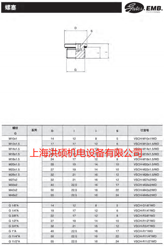 • 產(chǎn)品描述:EMB螺塞VSCH.上海洪碩(Gates.EMB,DNP,Gemels一級(jí)經(jīng)銷商)主營(yíng)品牌:Gates膠管、EMB接頭、DNP快速接頭、Gemels球閥
