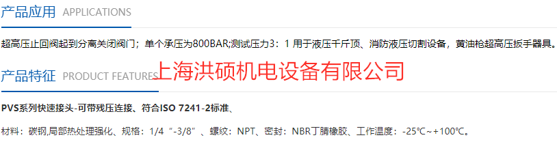 應(yīng)用:PVS和PVM系列接頭專為高壓液壓缸和液壓工具的應(yīng)用而設(shè)計(jì)的。它們可與市場(chǎng)上最普通的接頭互換。