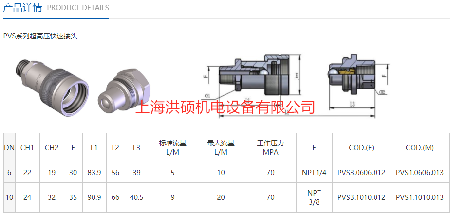 PVS超高壓球閥式、PVM錐閥式螺紋連接快速接頭: