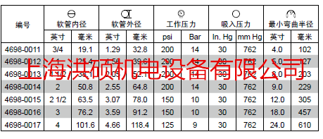 通過一層鋼絲螺旋來滿足完全的吸入要求。其內(nèi)膠材料(特氟龍Teflon或者四氟乙烯—全氟烷氧基乙烯基醚共聚物Neoflon)具備極佳的化學(xué)耐腐性,并通過蓋茨Gatron?鍍層在接頭端達(dá)到很好的彎曲疲勞安全性能。其設(shè)計(jì)保證其在10%(NaOH)