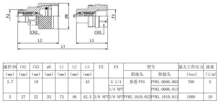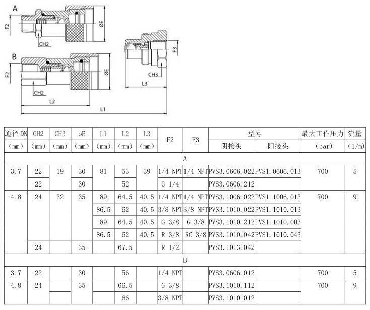 一、PVS超高壓球閥式、PVM錐閥式螺紋連接快速接頭:
