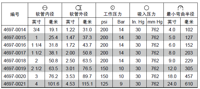 推薦用途:用于一系列化學(xué)品轉(zhuǎn)運(yùn)的罐式車,駁船,儲存罐。Renegade通過一層鋼絲螺旋來滿足完全的吸入要求,以及小彎曲半徑的布線要求。其超高分子量聚乙烯內(nèi)膠具備極佳的化學(xué)耐腐性,并通過蓋茨Gatron?鍍層在接頭端達(dá)到很好的彎曲疲勞安全性能。其設(shè)計(jì)保證其在10%(NaOH)212?F(100?C)的噴淋下可以容易的清洗。必須使用在位清潔(CIP)方式??捎糜诔^450種基礎(chǔ)化學(xué)物質(zhì),這些物質(zhì)是很多工業(yè)領(lǐng)域合成數(shù)量眾多的化學(xué)品的基體。請參照蓋茨化學(xué)介質(zhì)兼容性表確定正確的軟管選型。