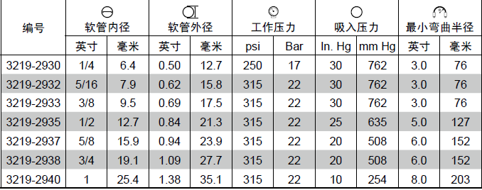 推薦用途:用于要求使用具有極佳柔韌性的優(yōu)質(zhì)編織軟管,可以最大程度耐受空氣,水,石油,汽油,煤油及燃油(最高120?F)及潤滑油(最高212?F),以及要求極佳耐天候及臭氧的場合。