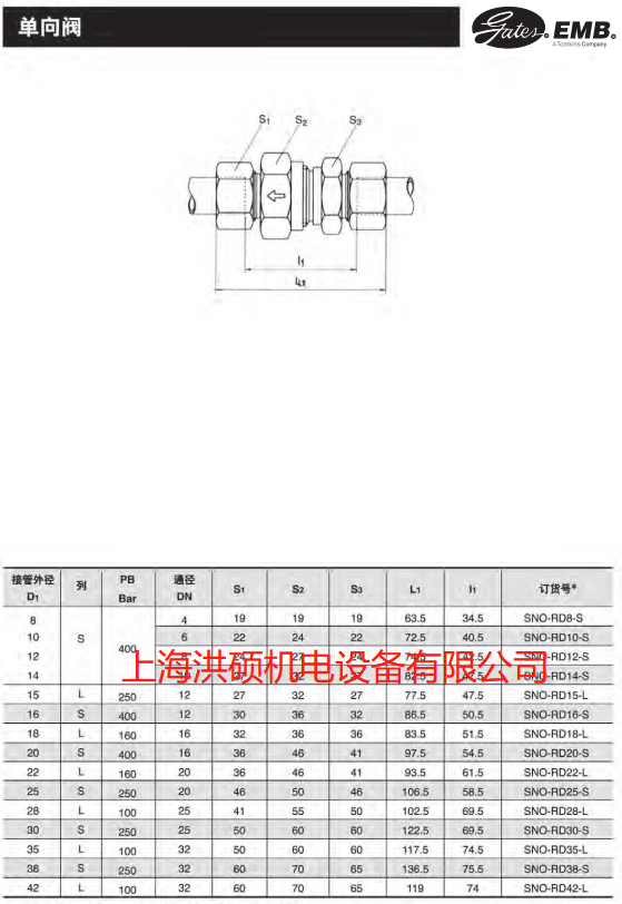• 產(chǎn)品描述:EMB單向閥RD.上海洪碩(Gates.EMB,DNP,Gemels一級經(jīng)銷商)主營品牌:Gates膠管、EMB接頭、DNP快速接頭、Gemels球閥