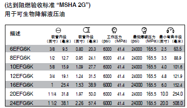 推薦用途:極端高壓、高脈沖的應(yīng)用,比如靜液壓傳動(dòng)裝置。EFG6K在設(shè)計(jì)上達(dá)到SAE 100R15規(guī)范的所有要求、EN 856 4SP (-6、-8、-10和-12)和 EN 856 4SH (-12、-16和-20)的性能要求。適用于可生物降解液壓油,比如多元醇酯、聚乙二醇、植物油以及標(biāo)準(zhǔn)石油基液壓油。可提供121’到200’的各種連續(xù)長度。