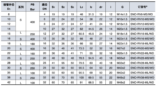 EMB單向閥主要型號(hào)有RV8-RS/WD;RV14-RS/WD;RV16-RS/WD;RV22-RL/WD等