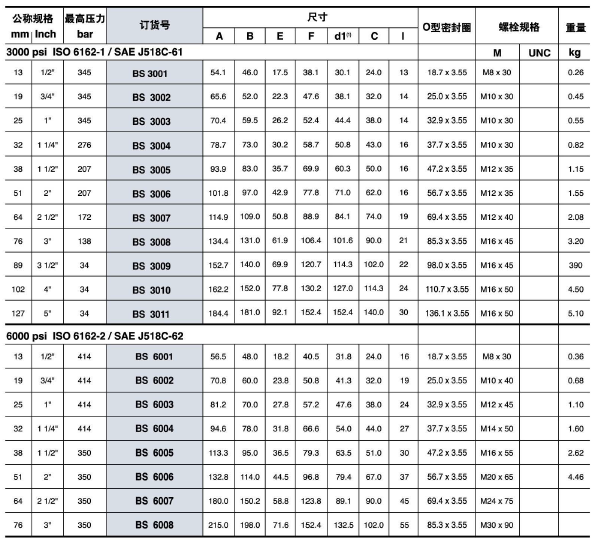 3000 psi ISO 6162-1/SAE J518C-61