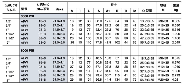 EMB法蘭 AFW直角法蘭 主要型號有AFW 13-3 21.6*4.3;AFW 25-3 34.5*4.7等