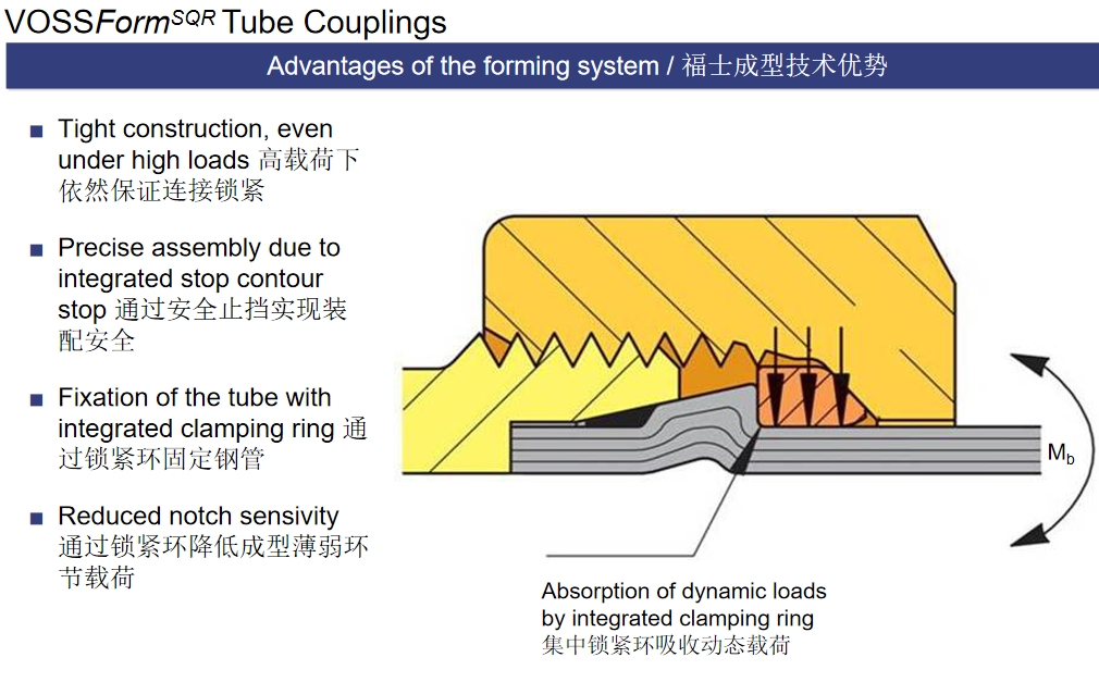 管接頭系統(tǒng)VOSSFormSQR通過其以久經(jīng)考驗(yàn)的、成熟的福士(VOSS)設(shè)計(jì)原理為基礎(chǔ)的創(chuàng)新設(shè)計(jì)滿足這些要求。