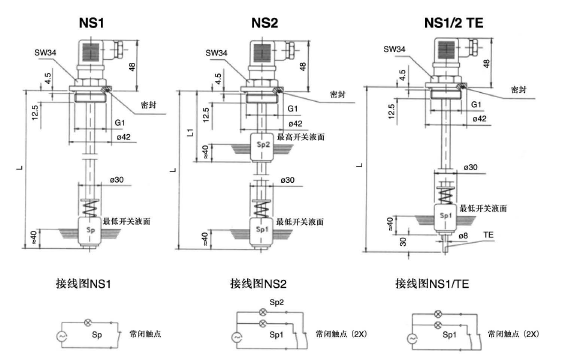 1 個(gè)或2個(gè)掖位開關(guān)觸點(diǎn)可供選擇