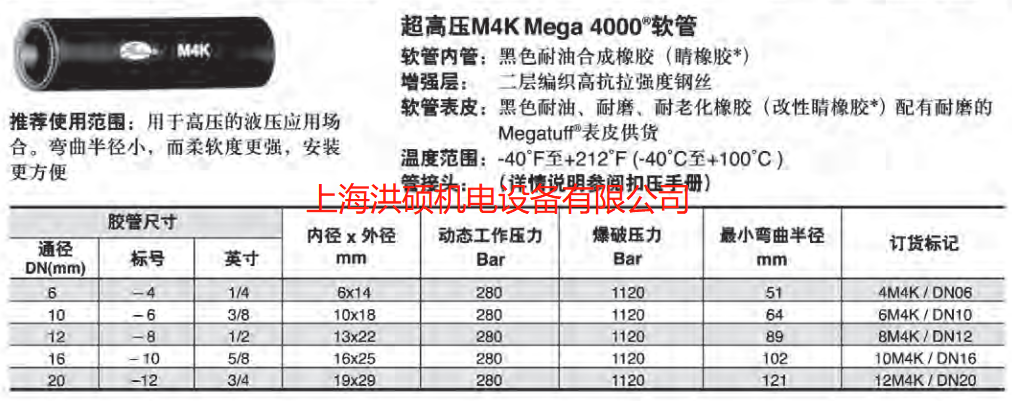 • 產(chǎn)品描述:Gates超高壓M4K Mega 4000膠管。上海洪碩(Gates.EMB,DNP,Gemels一級經(jīng)銷商)主營品牌:Gates膠管、EMB接頭、DNP快速接頭、Gemels球閥
