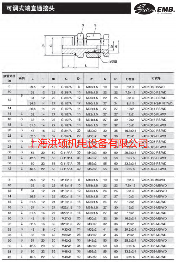 • 產(chǎn)品描述:EMB可調(diào)式端直通接頭VADKO.上海洪碩(Gates.EMB,DNP,Gemels一級經(jīng)銷商)主營品牌:Gates膠管、EMB接頭、DNP快速接頭、Gemels球閥