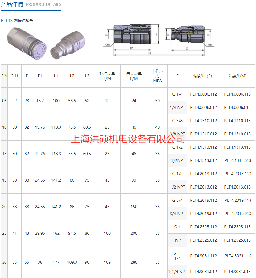 PLT4 系列——高強(qiáng)度平面快速接頭(350bar)